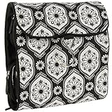 This hanging cosmetic bag by Stone & Co. consists of five different sized compartments. Bag folds in half, hanging hook at the top. Bag hasa medallion and floral print. Cosmetic bag measures 8" x 7.5" folded.Compare Price Stone & Co. Medallion Hanging Cosmetic Bag BLACK/WHITE